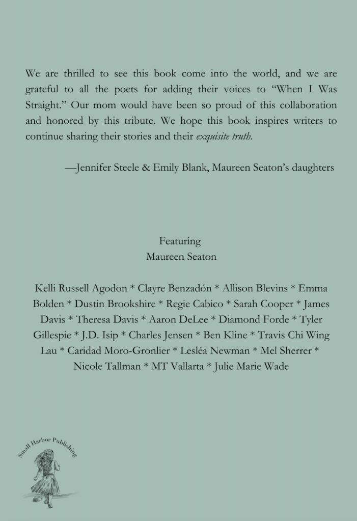 When I Was Straight: A Tribute to Maureen Seaton is poet/editor Dustin Brookshire’s brainchild: invite LGBTQIA+ poets to write poems named for Seaton’s titular classic, and see what happens. This anthology will be a classic in gender studies, as well as poetry. I schooled myself in distance, observes J.D. Islip. What did I know about myself that wasn’t a key in the wrong lock? asks Diamond Forde. Travis Chi Wing Lau recalls, I relearned how to walk/…The upright gait of a man/walking away from himself.” Julie Marie Wade explains, I did not love women as I do now./I loved them with my eyes closed, my back turned. Mel Sherrer states, I knew what women could do/alone together in a room–/or alone in this world. This is an anthology that shows each and every reader that they are not alone in this world.